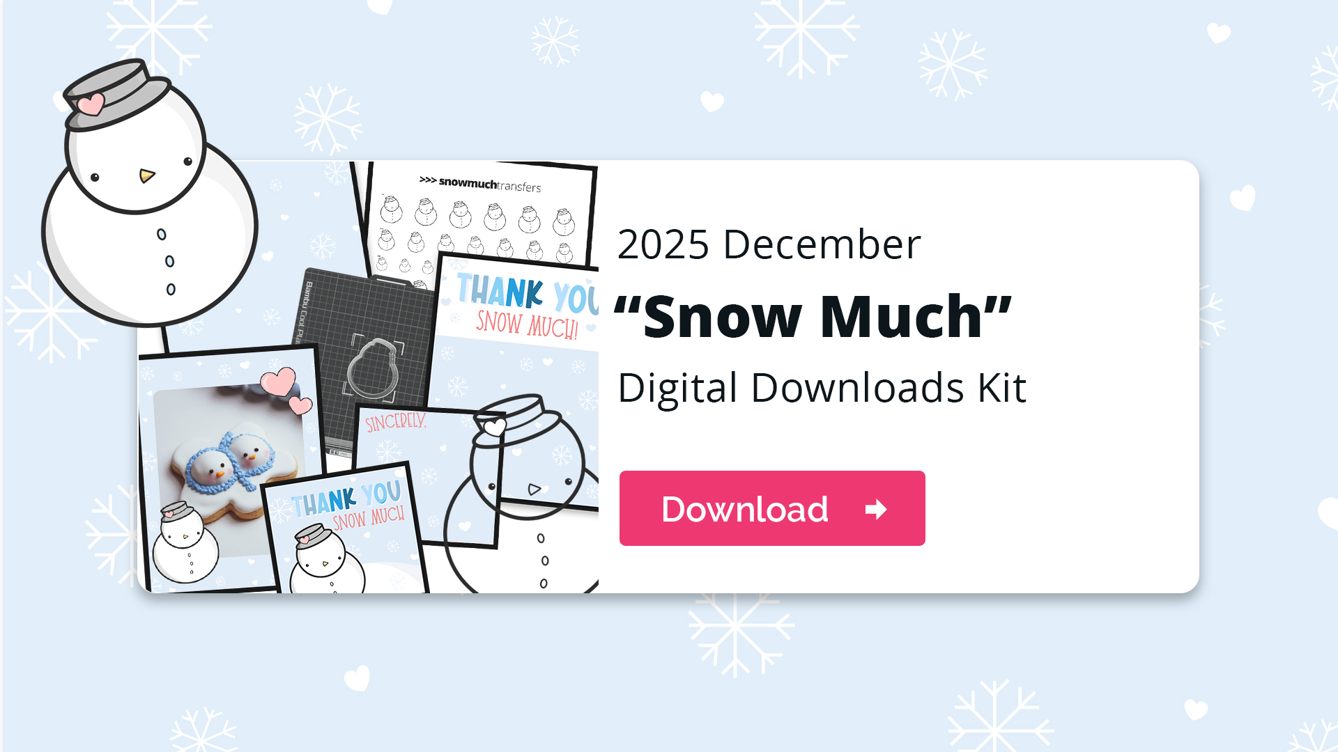Welcome to the 2025 December Digital Downloads. This month’s featured DD (Digital Download) is the continuation of our reworking of our Digital Downloads – we’re moving into a “kit” setup where each month you get a set of cookie tags, transfer sheet, cutter, backer, pattern, social media post frame, and Eddie prints!